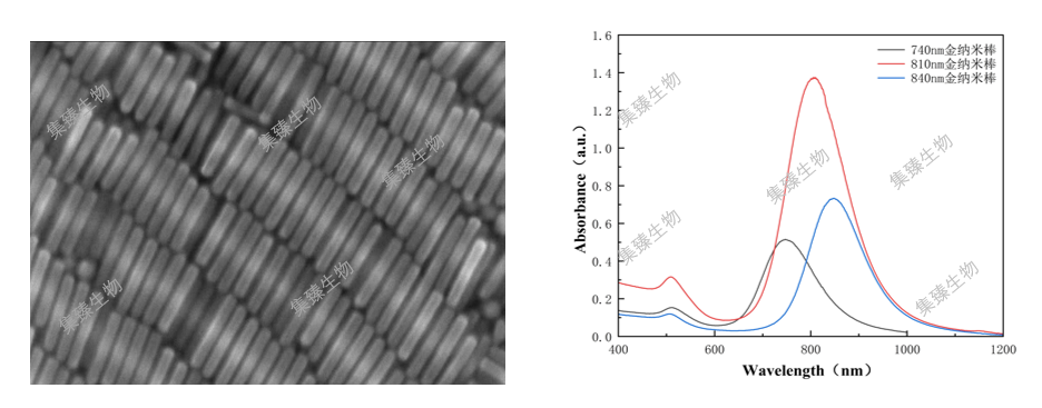 图2 金纳米棒扫描电镜及紫外图