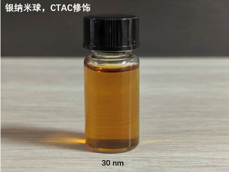 水溶性银纳米球表面包覆有柠檬酸钠,带负电荷。银纳米球的水溶液随粒径不同呈现亮黄、黄白乳状颜色。