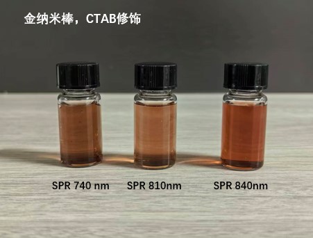 金纳米棒水溶液颜色与颗粒尺寸、形貌和浓度有关,随长径比不同呈现紫色、橙黄、土黄等颜色变化。