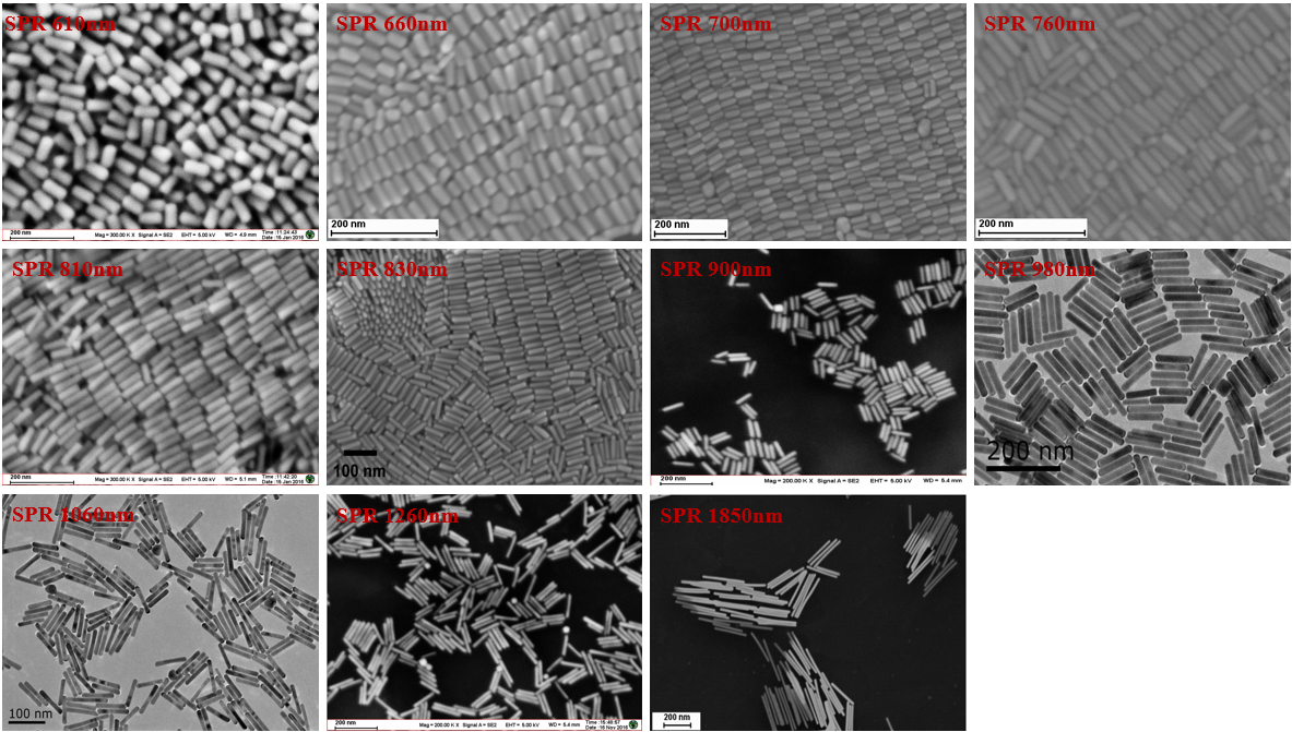 另外,可根据客户需求,提供PEG、介孔二氧化硅、介孔二氧化硅等不同配体修饰的金纳米棒(粒径范围10~130nm)。