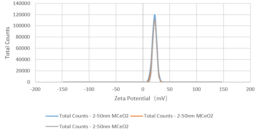 2)介孔二氧化铈纳米颗粒Zeta电位(22mV):