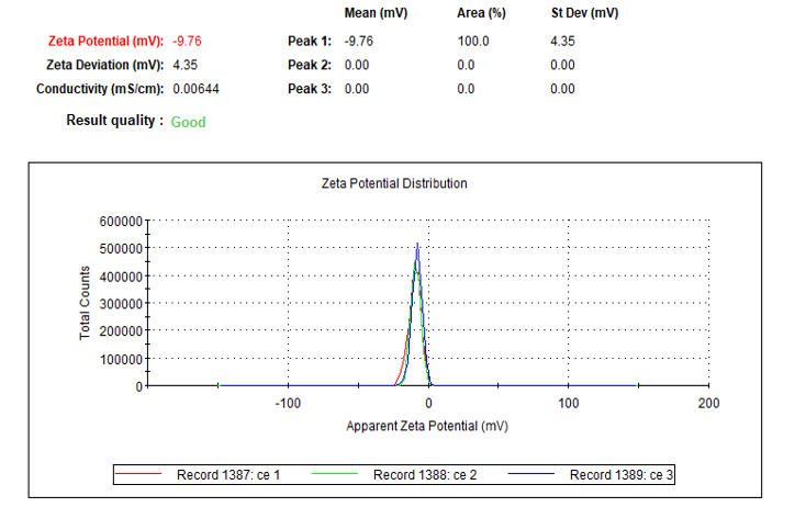 2)中空介孔二氧化铈纳米颗粒Zeta图: